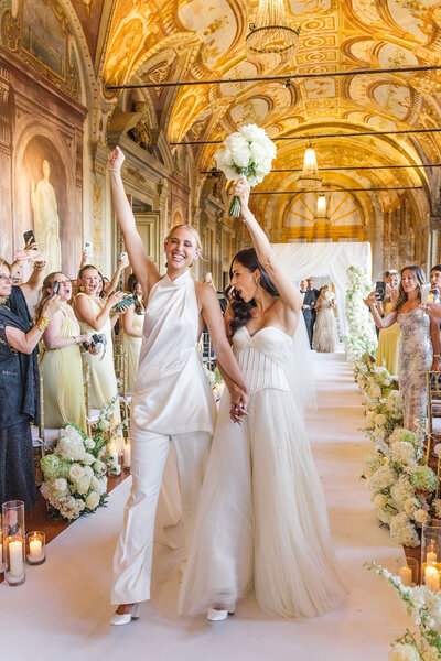 Emily and Shelby's wedding at the historic Villa Corsini in Florence was a blast, and their energy was contagious. The two-day event kicked off with a welcome dinner in the city center, where the girls greeted their guests with Italian specialties, including, of course, pizza!
